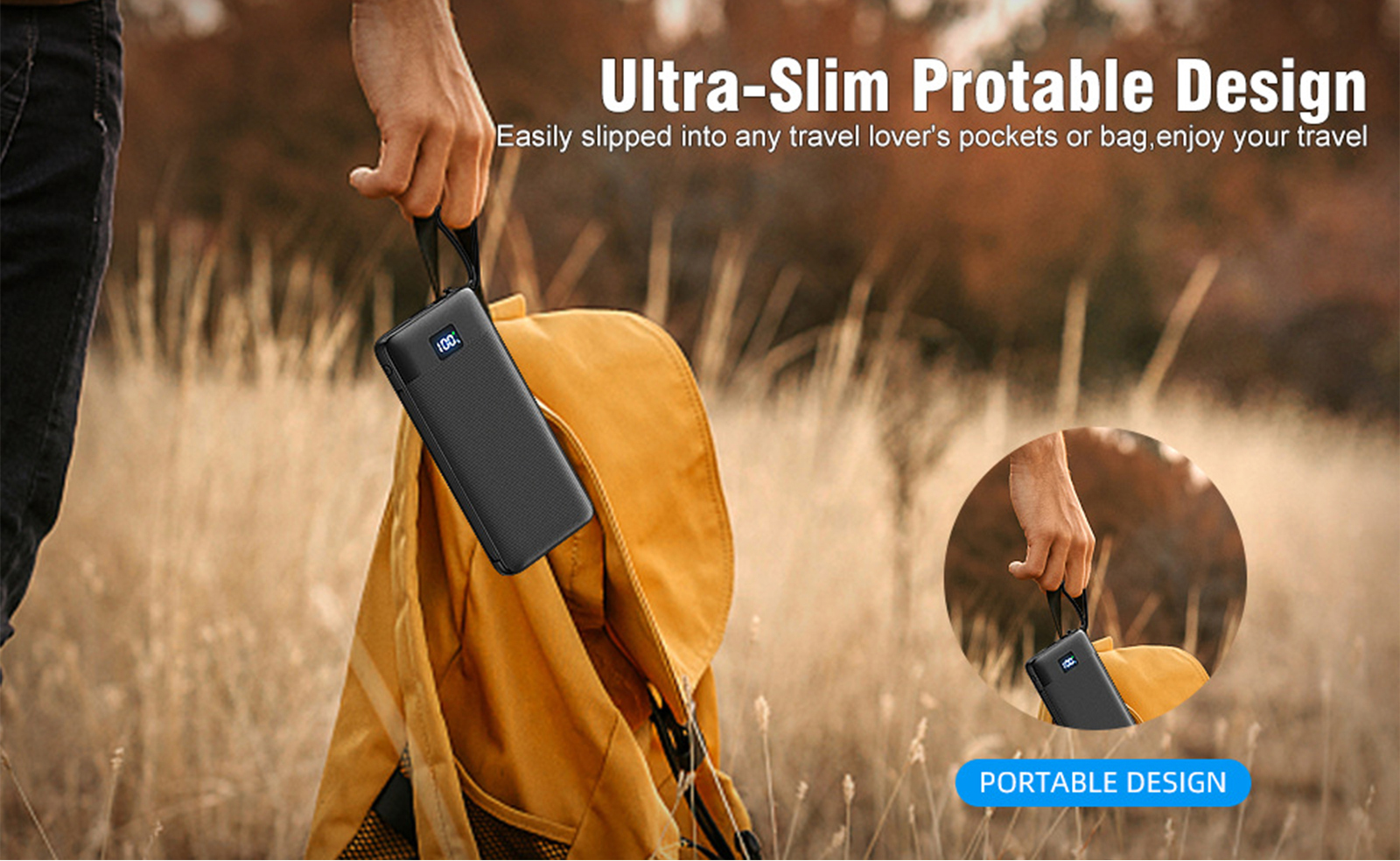 1PCS 10000mAh Portable Power Chargers-22.5W Fast Charging Power Bank Built in Cables and Wall Plug, Smart LED Display Slim Travel Battery Pack for Samsung Google LG Moto iPhone iPad