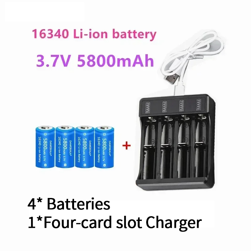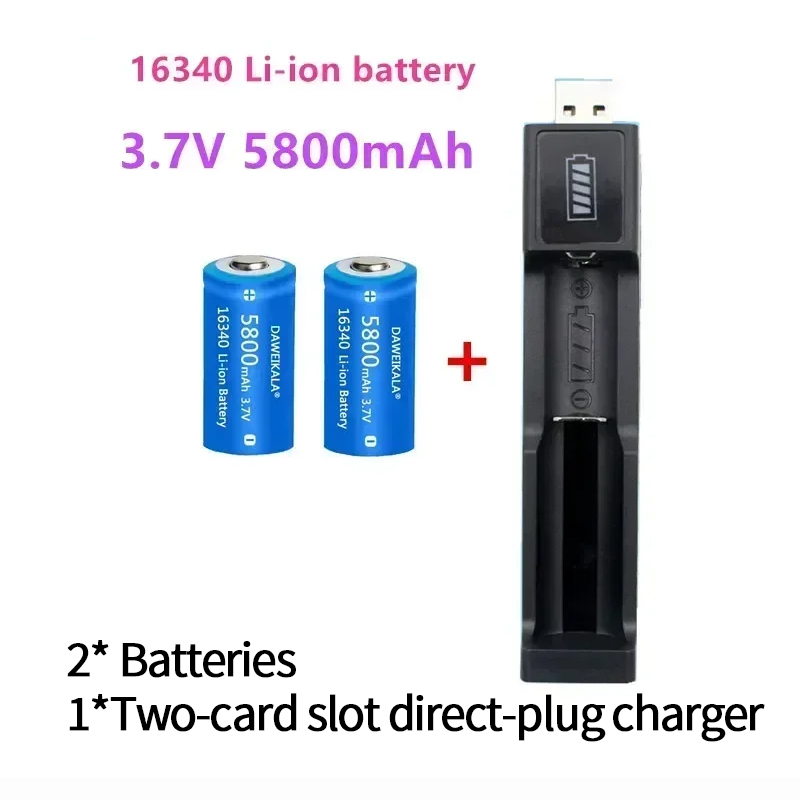3.7V 5800mAh 16340 Rechargeable Battery 16340 Li-ion Battery CR123A For LED Flashlight Travel Wall Charger 16340 CR123A