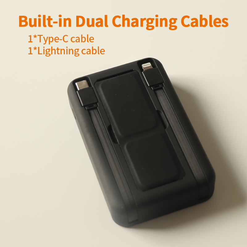 Lcasvoim Magnetic Portable Charger 10000mAh, Power Bank with Built-in Type-C & Lightning Cables, Slim & Lightweight MagSafe Battery Pack for iPhone 17/16/15/14 Series