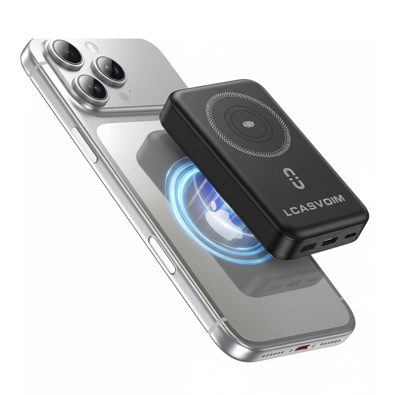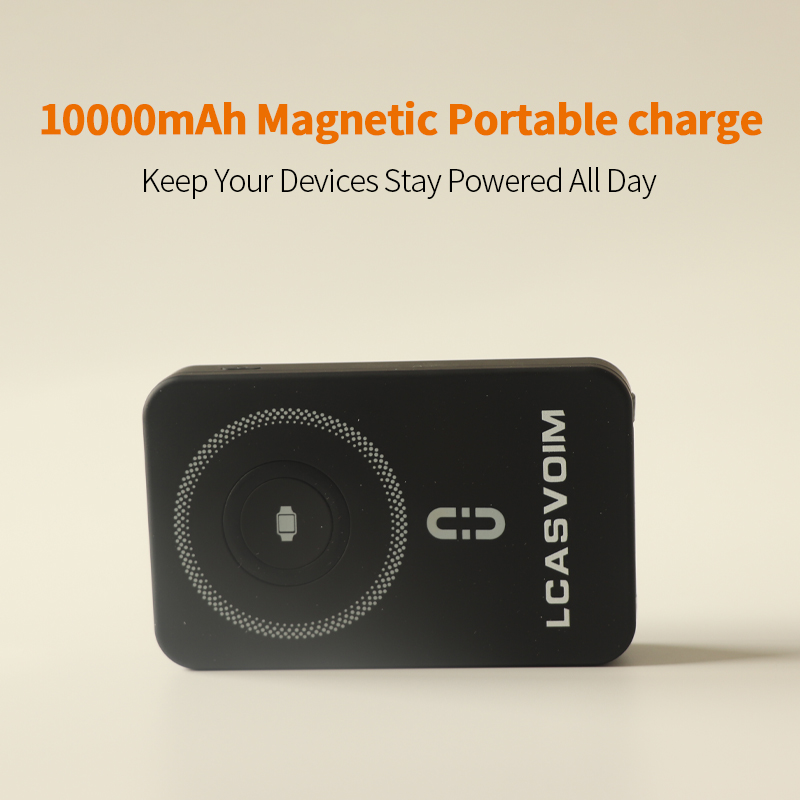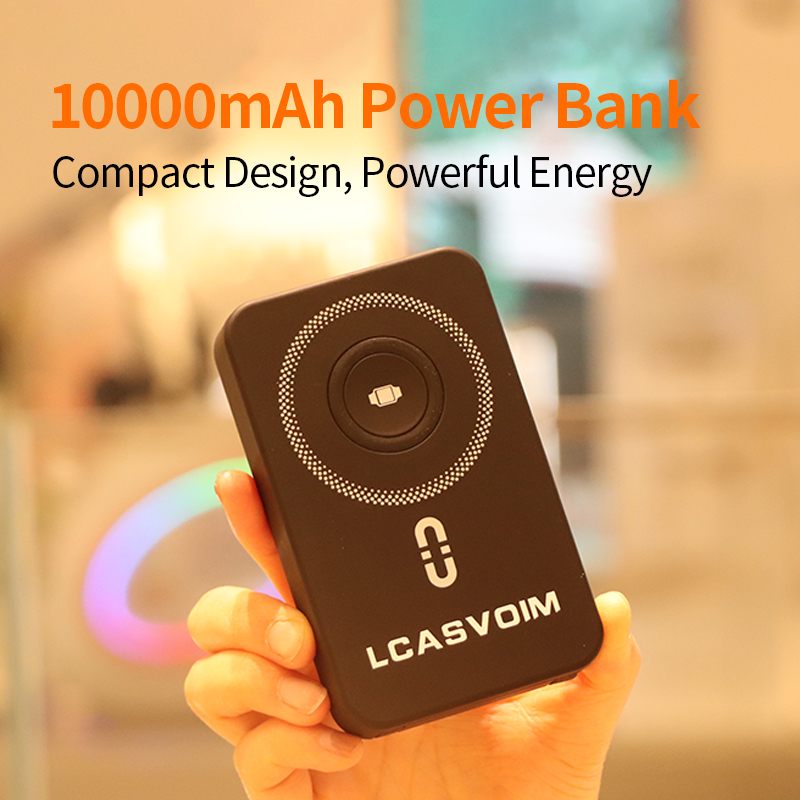 Lcasvoim Magnetic Portable Charger 10000mAh, Power Bank with Built-in Type-C & Lightning Cables, Slim & Lightweight MagSafe Battery Pack for iPhone 17/16/15/14 Series