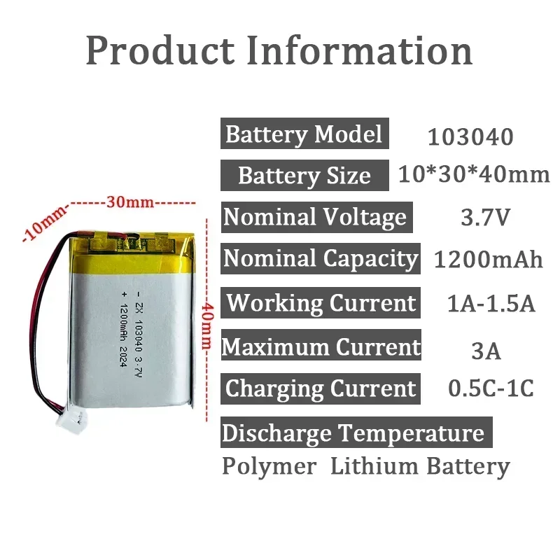 Real Capacity 1200mAh 103040 3.7V Polymer Lithium Rechargeable Battery for GPS Navigator MP5 Bluetooth Headset PS4